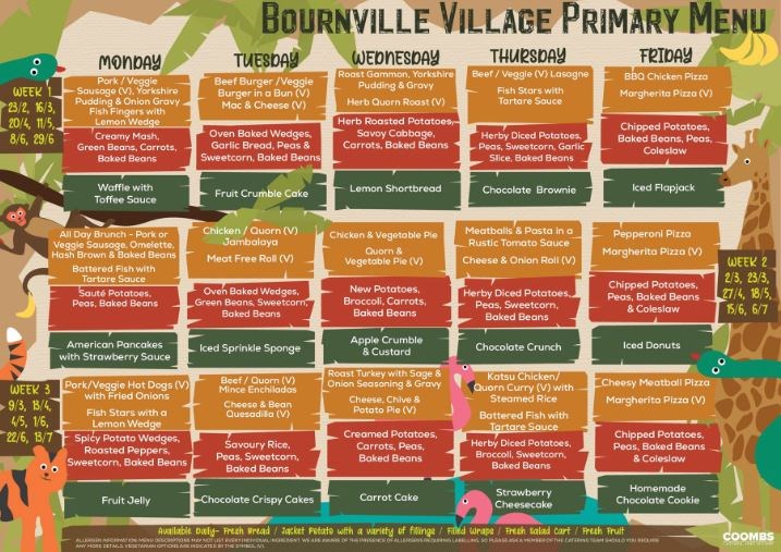There are also vegetarian and Halal options available each day, as well as gluten and dairy free menus available. If you would like to speak to one of the team about your child's allergies, please give us a call.
