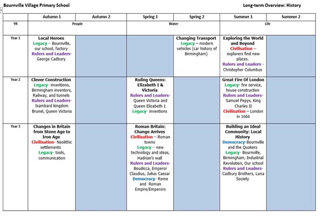 At Bournville Village Primary School we follow the National Curriculum Programme of Study for History.