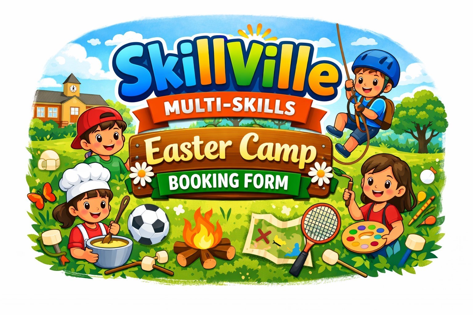 We are excited to be launching our SkillVille Multi-Skills Easter Camp this Easter holiday! The camp will run from Tuesday 7th April to Friday 10th April, 9:00am–3:00pm, and is open to children from Reception to Year 6.