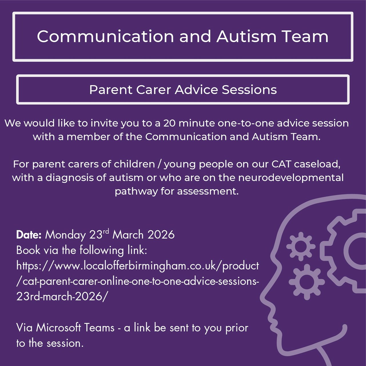 Neurodevelopmental Pathway Information Day 1st April - 10am