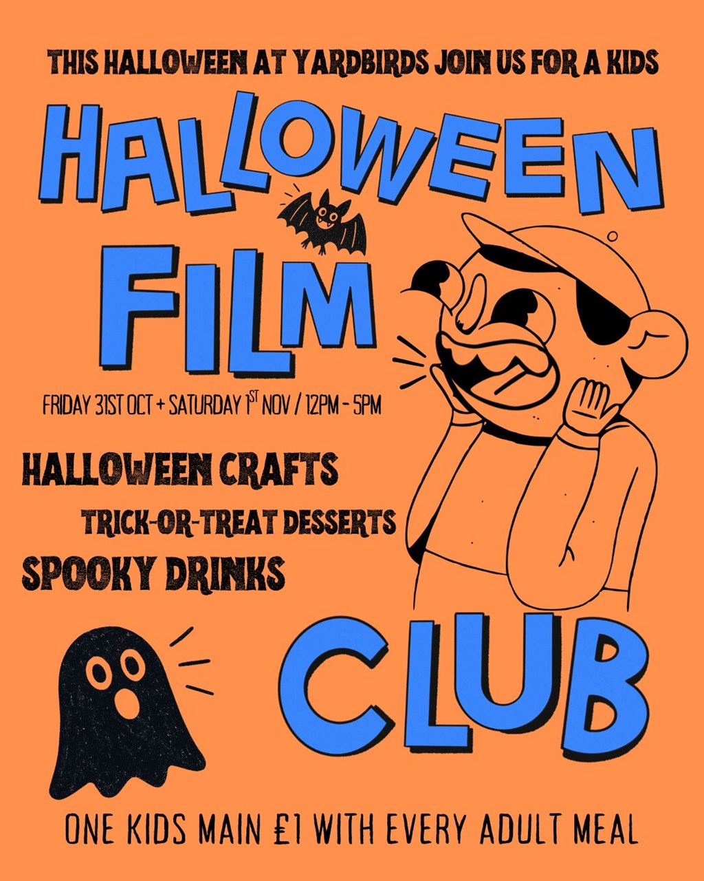Join Yardbirds for a spooky halloween treat! Kids can enjoy a Halloween film, crafts, and themed desserts while parents relax with their meal.