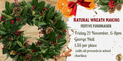 We are delighted to invite parents to join a special evening of festive wreath making at school on Friday 21st November and help us raise money for some important projects.