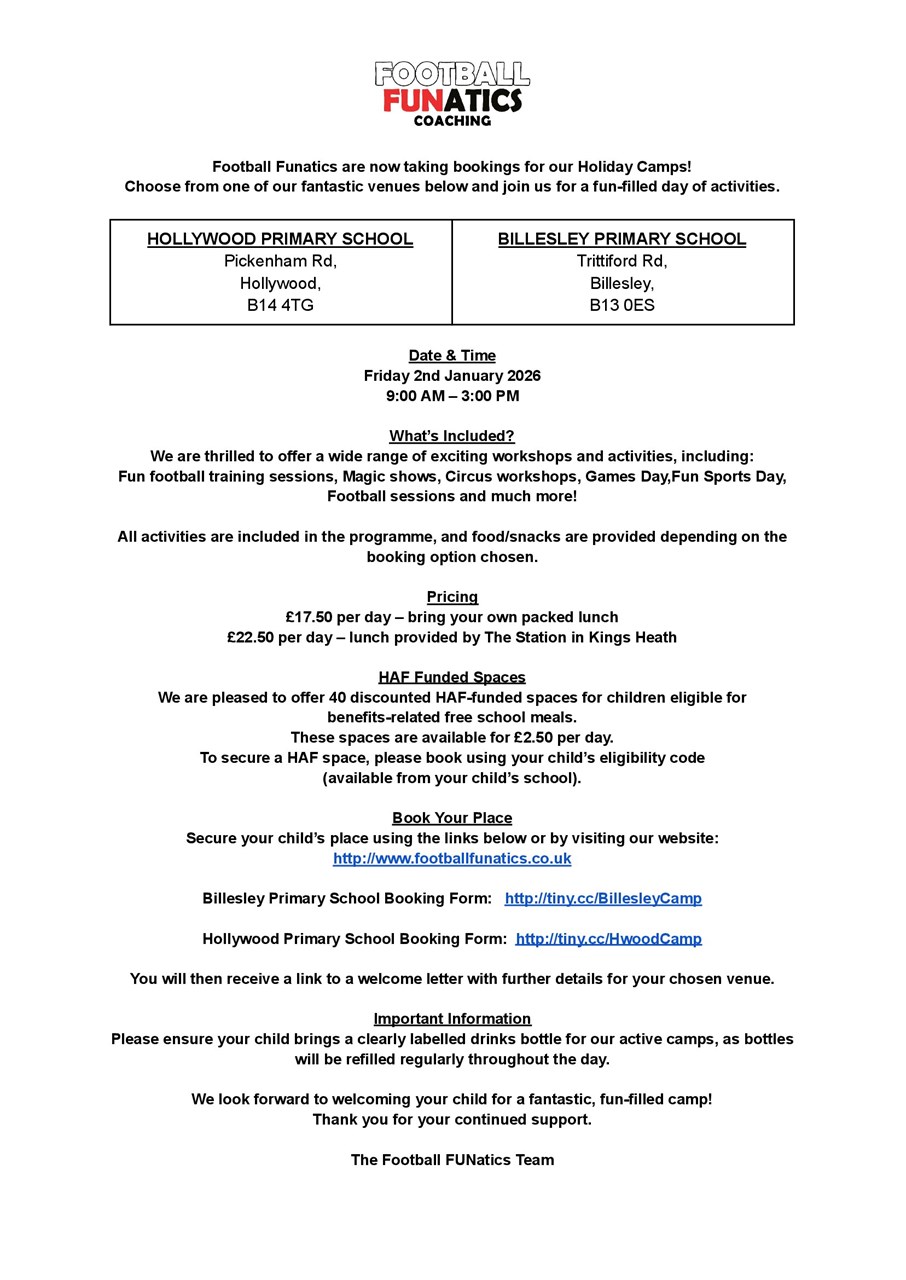 Parents and carers can book places via the QR code on the flyer below; more information on below flyer for session timings, prices etc.